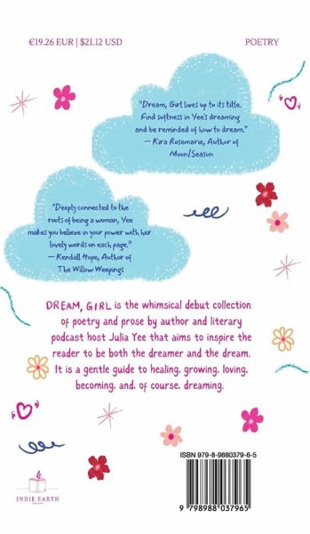 Dream, Girl is the whimsical debut collection of poetry and prose by author and literary podcast host Julia Yee that aims to inspire the reader to be both the dreamer and the dream. It is a gentle guide to healing, growing, loving, becoming, and, of course, dreaming.
