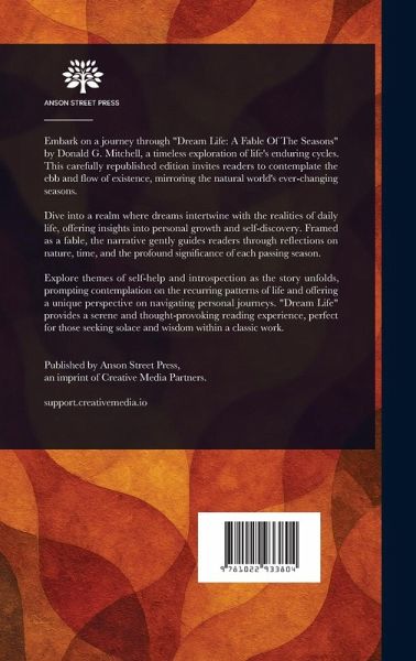 Embark on a journey through "Dream Life: A Fable Of The Seasons" by Donald G. Mitchell, a timeless exploration of life's enduring cycles. This carefully republished edition invites readers to contemplate the ebb and flow of existence, mirroring the natural world's ever-changing seasons. Dive into a realm where dreams intertwine with the realities of daily life, offering insights into personal growth and self-discovery. Framed as a fable, the narrative gently guides readers through reflections on nature, time, and the profound significance of each passing season. Explore themes of self-help and…mehr
