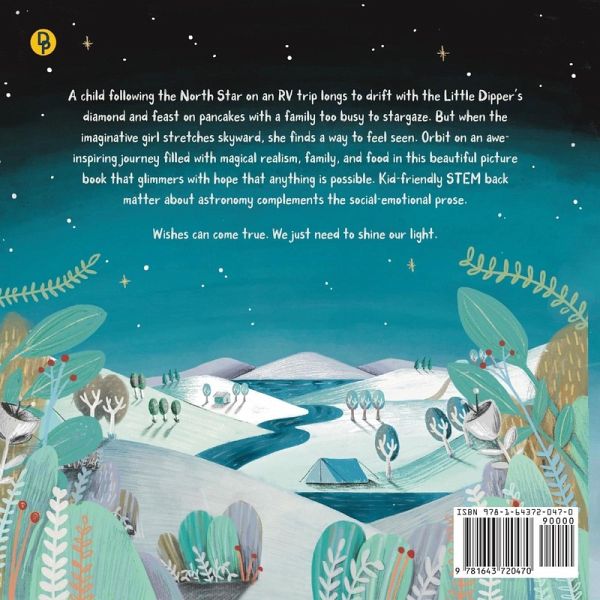 A child following the North Star on an RV trip longs to drift with the Little Dipper's diamond and feast on pancakes with a family too busy to stargaze. But when the imaginative girl stretches skyward, she finds a way to feel seen. Orbit on an awe-inspiring journey filled with magical realism, family, and food in this beautiful picture book that glimmers with the hope that anything is possible. Kid-friendly STEM back matter about astronomy complements the social-emotional prose. Wishes can come true. We just need to shine our light.