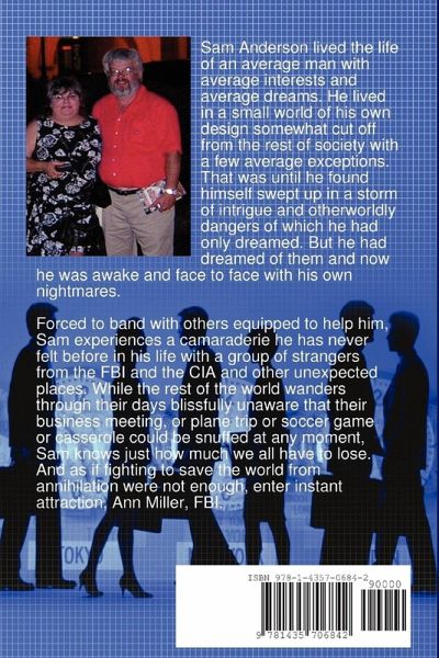 Sam Anderson lived the life of an average man with average interests and average dreams. He lived in a small world of his own design somewhat cut off from the rest of society with a few average exceptions. That was until he found himself swept up in a storm of intrigue and otherworldly dangers he had only dreamed of. But he had dreamed of them and now he was awake and face to face with his own nightmares. Forced to band with others equipped to help him, Sam experiences a camaraderie heâ¿¿s never felt before in his life with a group of strangers from the FBI and the CIA and other unexpected places. While the rest of the world wanders through their days blissfully unaware that their business meeting, or plane trip or soccer game or casserole could be snuffed at any moment, Sam knows just how much we all have to lose. And as if fighting to save the world from annihilation were not enough, enter instant attraction, Ann Miller, FBI.