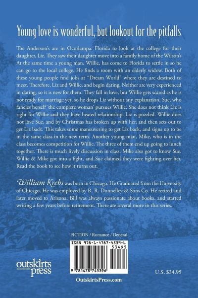 The Anderson's are in Ocorlampa. Florida to look at the college for their daughter, Liz. They saw their daughter move into a family home of the Wilson's At the same time a young man, Willie, has come to Florida to settle in so he can go to the local college. He finds a room with an elderly widow. Both of these young people find jobs at "Dream World" where they are destined to meet. Therefore, Liz and Willie, and begin dating. Neither are very experienced in dating, so it is new for them. They fall in love, but Willie gets scared as he is not ready for marriage yet, so he drops Liz without any explanation. Sue, who fancies herself 'the complete woman' pursues Willie. She does not think Liz is right for Willie and they have heated relationship. Liz is puzzled. Willie does not love Sue, and by Christmas has broken up with her, and then sets out to get Liz back. This takes some maneuvering to get Liz back, and signs up to be in the same class in the new term. Another young man, Mike, who is in the class becomes competition for Willie. The three of them end up going to lunch together. There is much lively discussion in class. Mike also got to know Sue. Willie & Mike got into a fight, and Sue claimed they were fighting over her. Read the book to see how it turns out.