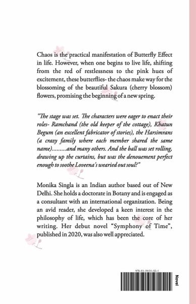 Chaos is the pratical manifestation of butterfly effect in life.However,when one begins to live life,shifting from the end of restlessness to the pink hues of excitement ,these butterflies-the chaos make way for the blossoming of the beautiful Sakura (Cherry Blossom ) Flowers,promising the beginning of a new spring.