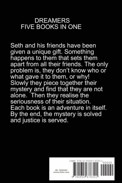 DREAMERS, The Complete Series in One Book. SCI-FI FOR KIDS, 8+ Four children share a unique ability. The only problem is, they don't know who or what gave it to them, or why! Slowly they piece together their mystery and find that they are not alone. Then they realise the seriousness of their situation. Each book is an adventure in itself. By the end of the fith book, the mystery is solved and justice is served.