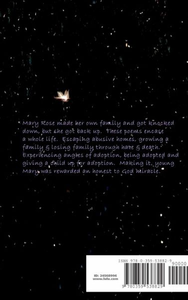 Mary Rose made her own family and got knocked down, but she got back up. These poems encase a whole life. Escaping abusive homes, growing a family & losing family through hate & death. Experiencing angles of adoption, being adopted and giving a child up for adoption. Making it, young Mary was rewarded an honest to God miracle.