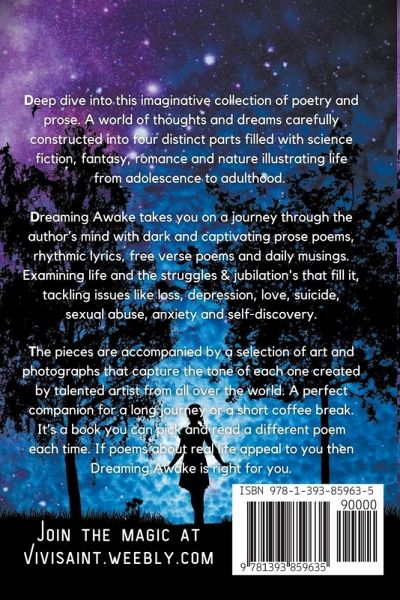 Deep dive into this imaginative collection of poetry and prose. A world of thoughts and dreams carefully constructed into four distinct parts filled with science fiction, fantasy, romance, and nature illustrating life from adolescence to adulthood. Dreaming Awake takes you on a journey through the author's mind with dark and captivating prose poems, rhythmic lyrics, free verse poems, and daily musings. Examining life and the struggles and jubilations that fill it, tackling issues like loss, depression, love, suicide, sexual abuse, anxiety, and self-discovery. A perfect companion for a long journey or a short coffee break. It's an audiobook you can pick and listen to a different poem each time. If poems about real life appeal to you, then Dreaming Awake is right for you.