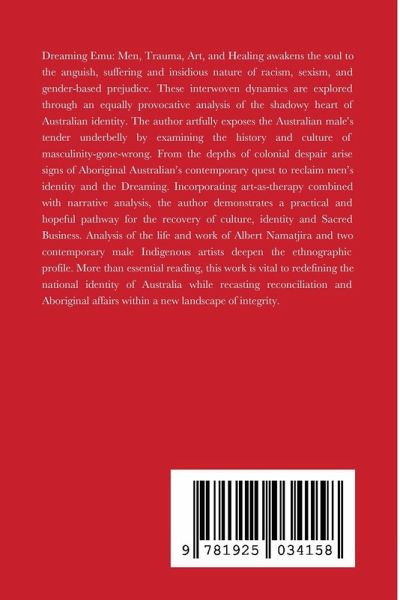 Dreaming Emu: Men, Trauma, Art, and Healing awakens the soul to the anguish, suffering and insidious nature of racism, sexism, and gender-based prejudice. These interwoven dynamics are explored through an equally provocative analysis of the shadowy heart of Australian identity. The author artfully exposes the Australian male's tender underbelly by examining the history and culture of masculinity-gone-wrong. From the depths of colonial despair arise signs of Aboriginal Australian's contemporary quest to reclaim men's identity and the Dreaming. Incorporating art-as-therapy combined with narrative analysis, the author demonstrates a practical and hopeful pathway for the recovery of culture, identity and Sacred Business. Analysis of the life and work of Albert Namatjira and two contemporary male Indigenous artists deepen the ethnographic profile. More than essential reading, this work is vital to redefining the national identity of Australia while recasting reconciliation and Aboriginal affairs within a new landscape of integrity.