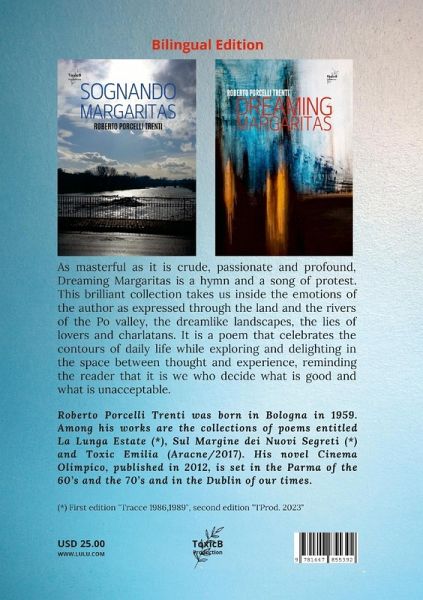 As masterful as it is crude, passionate and profound, Dreaming Margaritas is a hymn and a song of protest. This brilliant collection takes us inside the emotions of the author as expressed through the land and the rivers of the Po valley, the dreamlike landscapes, the lies of lovers and charlatans. It is a poem that celebrates the contours of daily life while exploring and delighting in the space between thought and experience, reminding the reader that it is we who decide what is good and what is unacceptable. This new dual language edition offers English language readers uniquely informed and readable access to the work of this contemporary voice.