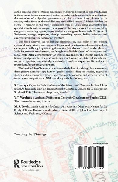 In the alarming contemporary context of widespread corruption and fraudulence in the overseas labour recruitment system in India, this book attempts to understand the institution of emigration governance and recruitment practices in the country with a focus on the unskilled and semi-skilled sectors. It brings together the results of research in the major emigration hubs of India with the aid of quantitative and qualitative tools, drawing from all the major stakeholders -intending emigrants, recruiting agents, return emigrants, emigrant households, Protector of Emigrants, foreign employers, foreign recruiting agents, Indian missions and emigrant workers at the destination countries. The book unravels the underlying discriminatory rationality of the existing system of emigration governance, its logical and structural incoherencies and the consequent inefficacy in protecting the most vulnerable sections of workers leaving India for overseas employment, resulting in unaffordable levels of transaction and social costs. By outlining the institutional failure, the volume outlines the fundamental principles of a new institution which would facilitate orderly, safe and secure emigration, economically sustainable beneficial expatriate life and social protection after the emigrants return. The book will be of interest to students and scholars of sociology, law, economics, demography, anthropology, history, gender studies, cultural studies, Diaspora studies, migration studies and international relations, apart from policy-makers and administrators of transnational migration and NGOs working in the field of migration.
