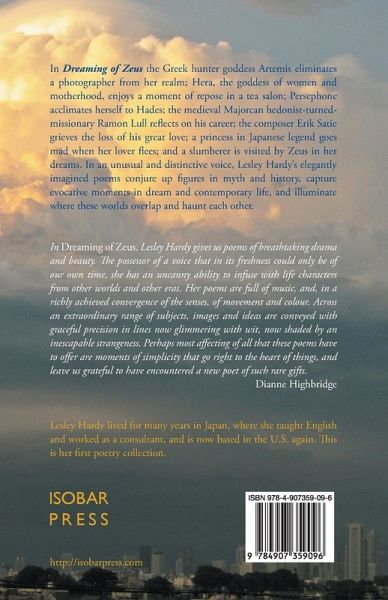 In Dreaming of Zeus the Greek hunter goddess Artemis eliminates a photographer from her realm; Hera, the goddess of women and motherhood, enjoys a moment of repose in a tea salon; Persephone acclimates herself to Hades; the medieval Majorcan hedonist-turned-missionary Ramon Lull reflects on his career; the composer Erik Satie grieves the loss of his great love; a princess in Japanese legend goes mad when her lover flees; and a slumberer is visited by Zeus in her dreams. In an unusual and distinctive voice, Lesley Hardy's elegantly imagined poems conjure up figures in myth and history, capture evocative moments in dream and contemporary life, and illuminate where these worlds overlap and haunt each other. "Lesley Hardy gives us poems of breathtaking drama and beauty. The possessor of a voice that in its freshness could only be of our own time, she has an uncanny ability to infuse with life characters from other worlds and other eras. Her poems are full of music, and, in a richly achieved convergence of the senses, of movement and colour. Across an extraordinary range of subjects, images and ideas are conveyed with graceful precision in lines now glimmering with wit, now shaded by an inescapable strangeness. Perhaps most affecting of all that these poems have to offer are moments of simplicity that go right to the heart of things, and leave us grateful to have encountered a new poet of such rare gifts." (Dianne Highbridge)