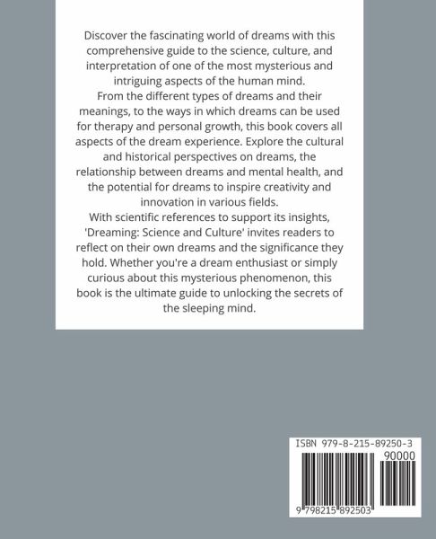 Dreaming Science and Culture is a comprehensive guide to exploring the mysterious and intriguing realm of dreams. This book takes a multi-disciplinary approach to understanding the science, culture, and meaning behind our nighttime adventures. The book delves into topics such as the different types of dreams, cultural perspectives on dreams, the representation of dreams in literature and the arts, dream analysis, and the relationship between dreams and mental health. The book also explores the role of sleep disorders in dream experiences, the use of dream journals for self-reflection and personal growth, and the potential for dreams to inspire creativity and innovation. It discusses famous dream-related works of art and literature, as well as the impact of certain cultural or historical events on dreams and dream interpretation. For anyone curious about the fascinating world of dreams, this book is an informative and insightful must read. It provides a comprehensive overview of the science and culture of dreams, and offers valuable insights into the potential significance of our nighttime adventures.