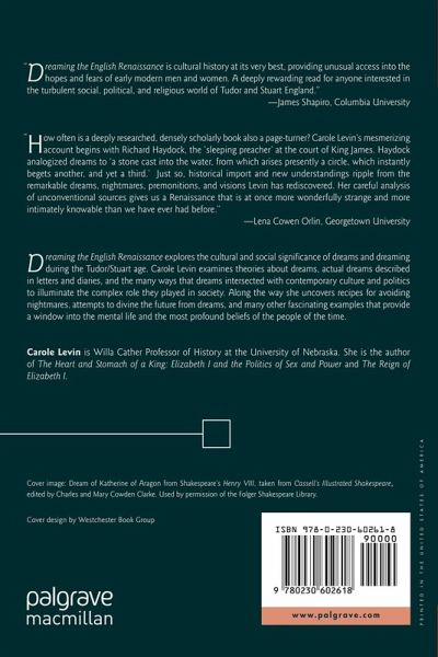 "In Dreaming the English Renaissance: Politics and Desire in Court and Culture, Carole Levin attempts to trace the varied meanings of dreams in early modern England. She has succeeded admirably in achieving that goal. Levin s treatment is rich in detail drawn from an amazing variety of primary sources, such as learned tomes on dreams, plays, poems, diaries, letters, ballads, pamphlets and broadsheets, as well as on a substantial number of recent scholarly works concerning the life and times of early modern England. This is quite a good book on English dreams and dreamers of the early modern era." (Discoveries)