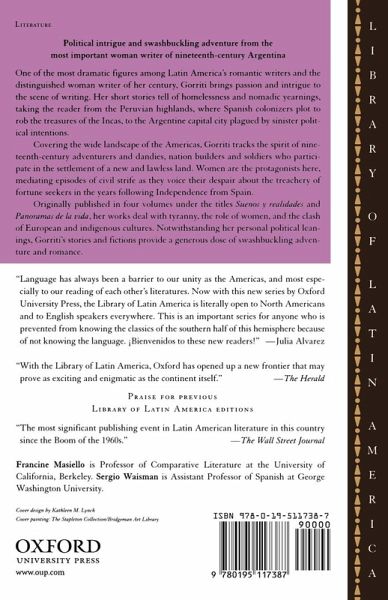 One of the most dramatic figures among Latin America's romantic writers and the distinguished woman writer of her century, Juana Manuela Gorriti brings passion and intrigue to the scene of writing. An exile from her native Argentina who sought refuge first in Bolivia and then in Peru, her lifetime of travel and displacement is echoed in her fictions. Her short stories tell of homelessness and nomadic yearnings, taking the reader from the Peruvian highlands, where Spanish colonizers plot to rob the treasures of the Incas, to the Argentine capital city plagued by sinister political intentions. Her later fictions move from Chile to scenes of the California Gold Rush. Covering the wide landscape of the Americas, Gorriti tracks the spirit of nineteenth-century adventurers and dandies, nation builders and soldiers who participate in the conflicts of settlement in a new and lawless land. Women are the protagonists here, mediating episodes of civil strife as they voice their despair about the treachery of fortune seekers in Latin America in the years following Independence from Spain. Dreams and Realities offers a sampling of Gorriti's stories, showing the range of her commitment to political fiction drawn in the romantic style. Originally published in four volumes under the titles Suenos y realidades and Panoramas de la vida, her works deal with the tyranny of the Rosas regime, the mediating role of women, and the clash of European and indigenous cultures. Notwithstanding her personal political leanings, Gorriti's stories and fictions provide a generous dose of swashbuckling adventure and romance. Translated into English for the first time by Sergio Waisman and with anIntroduction, Chronology, and Critical Notes by Francine Masiello, the book gives a woman's view of the world of political intrigue and civil unrest that marks Latin America's turbulent nineteenth century.