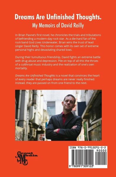 When the lines between a drug-addicted rock star and a die-hard fan begin to blur ... In Brian Paone's first novel, he chronicles the trials and tribulations of befriending a modern-day rock star. As a die-hard fan of the rock band God Lives Underwater, Brian wins the trust of lead singer David Reilly. This honor comes with its own set of extreme personal highs and devastating shared lows. During their tumultuous friendship, David fights an extreme battle with drug abuse and depression. Pile on top of all this the throes of a cutthroat music industry and the realization of one's own mortality. Dreams Are Unfinished Thoughts is a novel that convinces the heart of every reader that perhaps dreams are never really finished. Instead, they are passed on from one friend to the next.