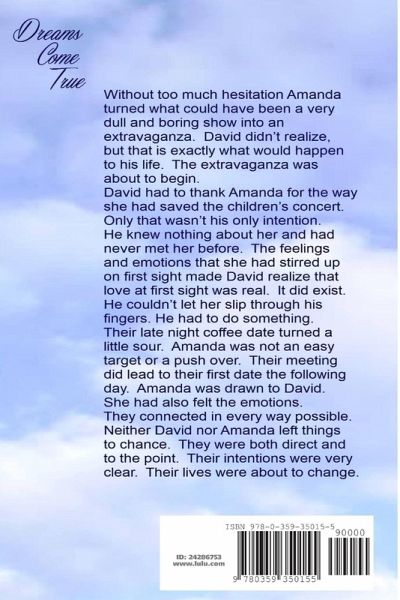 Without too much hesitation Amanda turned what could have been a very dull and boring show into an extravaganza. David didn't realize, but that is exactly what would happen to his life. The extravaganza was about to begin. David had to thank Amanda for the way she had saved the children's concert. Only that wasn't his only intention. He knew nothing about her and had never met her before. The feelings and emotions that she had stirred up on first sight made David realize that love at first sight was real. It did exist. He couldn't let her slip through his fingers. He had to do something. Their late night coffee date turned a little sour. Amanda was not an easy target or a push over. Their meeting did lead to their first date the following day. Amanda was drawn to David. She had also felt the emotions. They connected in every way possible. Neither David nor Amanda left things to chance. They were both direct and to the point. Their intentions were very clear. Their lives were about to change.