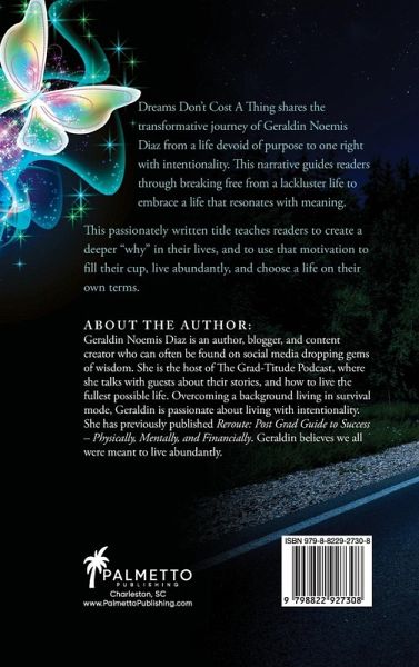 Embrace a journey of healing as you take your first steps toward hope and change. With the right helper and little determination, you too can learn to live with intentionality, ultimately experiencing breathtaking meaning and purpose. Most of us spend too much time having our souls drained by unfulfilling tasks, mundane routines, and a life that never stops to ask the question: "What is this all for?" Dreams Don't Cost A Thing paves the way for you to live intentionally through powerful, true stories from the author's life. Inspired by her own seasons of struggle, including a near-death experience, Geraldin Noemis Diaz shares deeply personal anecdotes surrounding how she found purpose and meaning amid hardship. Learn not to take your time for granted, and find heartfelt encouragement as you learn to identify and live a life aimed toward your truest needs, longings, desires. Perfect for fans of James Clear, Tabitha Brown, and Lisa Nichols, this book's powerful self-help volume is a guide along the wandering roads of life, designed to replenish your strength and grant you wisdom for your journey. The book also contains an audit activity that will help you take immediate action toward identifying your "why" and capitalizing on your deepest motivations. Written with an open, invitational tone but aimed specifically at addressing the needs of readers of Black, Latinx, and Caribbean descent, this book is the perfect self-help title for those ready to find a higher sense of calling and fulfillment.