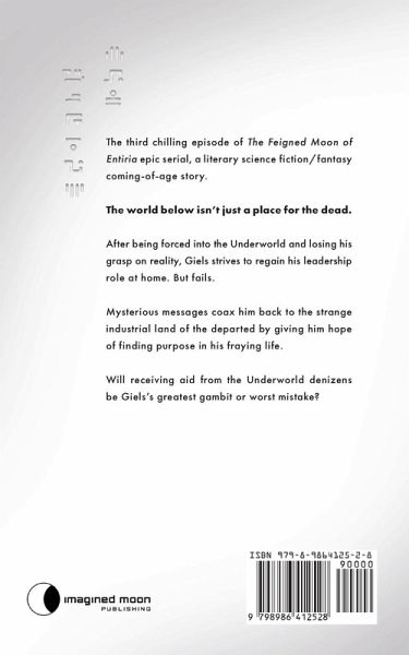 The third chilling episode of The Feigned Moon of Entiria epic serial, a literary science fiction/fantasy coming-of-age story. The world below isn't just a place for the dead. After being forced into the Underworld and losing his grasp on reality, Giels strives to regain his leadership role at home. But fails. Mysterious messages coax him back to the strange industrial land of the departed by giving him hope of finding purpose in his fraying life. Will receiving aid from the Underworld denizens be Giels's greatest gambit or worst mistake?