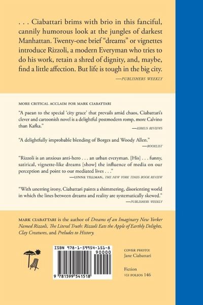 ... Ciabattari brims with brio in this fanciful, cannily humorous look at the jungles of darkest Manhattan. Twenty-one brief "dreams" or vignettes introduce Rizzoli, a modern Everyman who tries to do his work, retain a shred of dignity, and, maybe, find a little affection. But life is tough in the big city. -Publishers Weekly