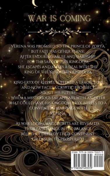 Verena was promised to the prince of Zorya, but fate had other plans. After enduring abuse and hardship for the sake of this kingdom, she escapes and makes a deal with the king of the northern kingdom. King Eryx of Khyrel suffered a tragic loss and now faces a cryptic prophecy about his future. When a mysterious fae appears with an offer that could save his kingdom, Eryx agrees to a convenient marriage with Verena. As war looms and secrets are revealed, their fate hangs in the balance: will they destroy their continent or ensure its prosperity?