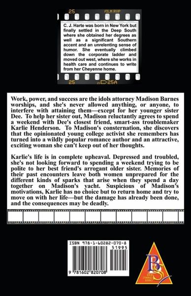 Work, power, and success are the idols attorney Madison Barnes worships, and she's never allowed anything, or anyone, to interfere with attaining them-except for her younger sister Dee. To help her sister out, Madison reluctantly agrees to spend a weekend with Dee's closest friend, a smart-ass troublemaker Karlie Henderson. To Madison's consternation, she discovers that the opinionated young college activist she remembers has turned into a wildly popular romance author and an attractive, exciting woman she can't quite keep out of her thoughts. Karlie's life is in complete upheaval. Depressed and troubled, she's not looking forward to spending a weekend trying to be polite to her best friend's arrogant older sister. Memories of their past encounters leave both women unprepared for the different kinds of sparks that arise when they spend a day together on Madison's yacht. Suspicious of Madison's motivations, Karlie has no choice but to return home and try to move on with her life-but the damage has already been done, and the consequences may be deadly.