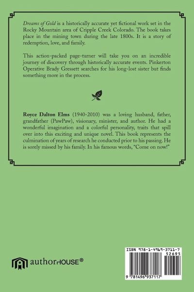 Dreams of Gold is a historically accurate yet fictional work set in the Rocky Mountain area of Cripple Creek Colorado. The book takes place in the mining town during the late 1800s. It is a story of redemption, love, and family. This action-packed page-turner will take you on an incredible journey of discovery through historically accurate events. Pinkerton Operative Brady Gressett searches for his long-lost sister but finds something more in the process.