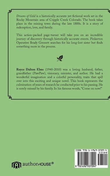 Dreams of Gold is a historically accurate yet fictional work set in the Rocky Mountain area of Cripple Creek Colorado. The book takes place in the mining town during the late 1800s. It is a story of redemption, love, and family. This action-packed page-turner will take you on an incredible journey of discovery through historically accurate events. Pinkerton Operative Brady Gressett searches for his long-lost sister but finds something more in the process.