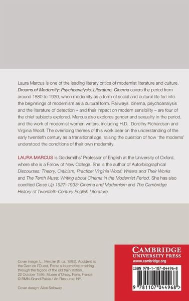 Laura Marcus is one of the leading literary critics of modernist literature and culture. Dreams of Modernity: Psychoanalysis, Literature, Cinema covers the period from around 1880 to 1930, when modernity as a form of social and cultural life fed into the beginnings of modernism as a cultural form. Railways, cinema, psychoanalysis and the literature of detection - and their impact on modern sensibility - are four of the chief subjects explored. Marcus also stresses the creativity of modernist women writers, including H. D., Dorothy Richardson and Virginia Woolf. The overriding themes of this work bear on the understanding of the early twentieth century as a transitional age, thus raising the question of how 'the moderns' understood the conditions of their own modernity.
