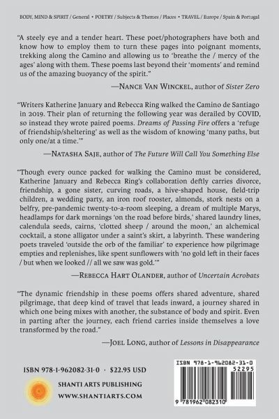 Dreams of Passing Fire is a collaborative poetry collection with two distinct voices echoing the experiences of a shared journey. Katherine January and Rebecca Ring set out in September of 2019 to traverse what they could of the Camino de Santiago, an ancient trail across northern Spain. Their plan to finish the journey the following year was disrupted by the pandemic, so instead, from the isolation of their own homes, they ventured out in words, beginning from a common starting place-a town, an image, an encounter-then diving inward. What began as an odyssey on foot became Dreams of Passing Fire. The uniqueness of this collection of thirty poems is the interweaving of two voices, two points of view on the same interrupted journey and its after-journey. Though the poems were written individually, what evolved was a dynamic conversation on themes universal to all seekers. The poems cross paths with one other as they wander on and off the trail, into the poets' lives and back. In this collection, the reader is invited into a stereoscopic rendering of landscapes both inner and earthly.