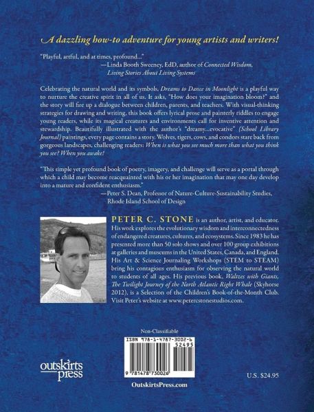 A dazzling how-to adventure for young artists and writers! "Playful, artful, and at times, profound..." -Linda Booth Sweeney, EdD, author of Connected Wisdom, Living Stories About Living Systems. Celebrating the natural world and its symbols, Dreams to Dance in Moonlight is a playful way to nurture the creative spirit in all of us. It asks, "How does your imagination bloom?" and the story will fire up a dialogue between children, parents, and teachers. With visual-thinking strategies for drawing and writing, this book offers lyrical prose and painterly riddles to engage young readers, while its magical creatures and environments call for inventive attention and stewardship. Beautifully illustrated with the author's "dreamy...evocative" (School Library Journal) paintings, every page contains a story. Wolves, tigers, cows, and condors stare back from gorgeous landscapes, challenging readers: When is what you see much more than what you think you see? When you awake! "This simple yet profound book of poetry, imagery, and challenge will serve as a portal through which a child may become reacquainted with his or her imagination that may one day develop into a mature and confident enthusiasm."-Peter S. Dean, Professor of Nature-Culture-Sustainability Studies, Rhode Island School of Design.