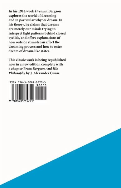 In his 1914 work "Dreams", Bergson explores the world of dreaming and in particular why we dream. In his theory, he claims that dreams are merely our minds trying to interpret light patterns behind closed eyelids, and offers explanations of how outside stimuli can effect the dreaming process and how to enter dream of dream-like states. Highly recommended for those with an interest in dreams and the science of dreaming. Henri-Louis Bergson (1859-1941) was a French-Jewish philosopher. He had a significant influence on the tradition of continental philosophy during the first half of the twentieth century until World War II, and is famous for his idea that immediate experience and intuition are more important than abstract rationalism and science for understanding the nature of reality. This classic work is being republished now in a new edition complete with a Chapter From "Bergson And His Philosophy" by J. Alexander Gunn. Translated from the original French.
