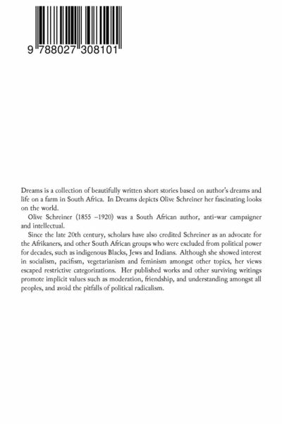 Dreams is a collection of beautifully written short stories based on author's dreams and life on a farm in South Africa. In Dreams depicts Olive Schreiner her fascinating looks on the world. Olive Schreiner (1855 -1920) was a South African author, anti-war campaigner and intellectual. Since the late 20th century, scholars have also credited Schreiner as an advocate for the Afrikaners, and other South African groups who were excluded from political power for decades, such as indigenous Blacks, Jews and Indians. Although she showed interest in socialism, pacifism, vegetarianism and feminism amongst other topics, her views escaped restrictive categorizations. Her published works and other surviving writings promote implicit values such as moderation, friendship, and understanding amongst all peoples, and avoid the pitfalls of political radicalism.