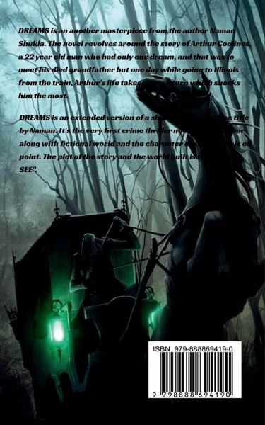 Everyone has dreams and those dreams lead the small sparkle of light to numerous events. The novel, DREAMS is a crime thriller novel revolving around the story of a 22-year-old man, Arthur Coolines who lives in Illinois. Despite having everything, he feels gloomy and mournful for his grandfather who died when he was just a year old, and keeps a dream to meet his grandfather one day, if possible, and wishes to see him once in his life. While taking a train to Illinois, Arthur falls asleep and wakes up in a queer place with dead people, colossal gates of hell, and terrific gigantic monsters. These specific things lead the story into various situations and complex escapades. The story being in a loop states the ambiance of Arthur and his answers to the circumstances he is lingered in. Undoubtedly, there are possible ways to solve a question, and that's what Arthur does. Arthur, starting from a normal day-to-day life to hell, then resuscitating back a measly duration of time makes the story knotty and paucity of stoicism.