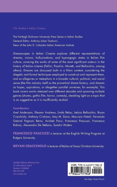 Acknowledgements Introduction Francesco Pascuzzi, Bryan Cracchiolo 1. Dreamed Cinema, Cinematic Dreams: Dreamscape, Neurosis and Desire in Federico Fellini's 8¿ Avishek Parui 2. The Uncanny and Mannequins: The Dream-Like Qualities of Two Italian Gothic Films, Il mulino delle donne di pietra and Lisa e il diavolo Fernando Pagnoni, Amy M. Davis 3. Massimo Fagioli's Influence and Psychoanalysis in Marco Bellocchio's Il diavolo in corpo Alessandro De Stefanis 4. The Visionary Realism of Marco Bellocchio's Buongiorno, note Francesco Rabissi 5. The Ironic Oneiric: Nanni Moretti and the Cinematic Challenges of the 1970s Axel Andersson 6. Life Is But a Dream: Reveries, Nightmares and Other Worlds in the Films of Nanni Moretti Eleanor Andrews 7. Sublimation, Myth and the Work of Dreams: Radical Nostalgia and Melancholic Attachment in Pier Paolo Pasolini's Edipo Re Linda Belau 8. The Cinedream in Pasolini and Cassavetes Anthony Cristiano 9. Gradivae and Nymphs: Walking Women in the Dreamscapes of Italian Cinema Maurizia Natali 10. Dreams, Nightmares, and Hallucinations in Francesca Comencini's Cinema Letizia Bellocchio 11. The Nightmarish in Dario Argento's Mother Trilogy: Spatial Oddities and Family Ties Sandra Waters List of Contributors Index