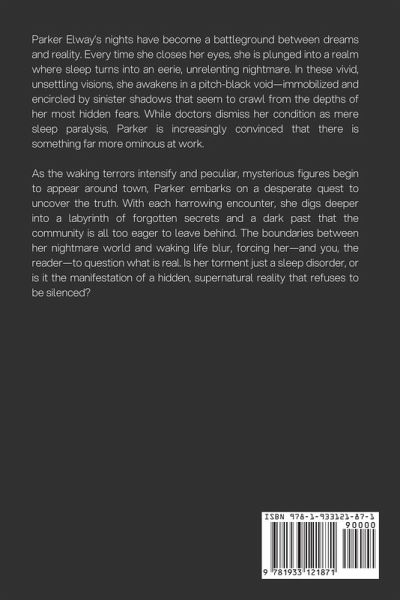 Parker Elway's nights have become a battleground between dreams and reality. Every time she closes her eyes, she is plunged into a realm where sleep turns into an eerie, unrelenting nightmare. In these vivid, unsettling visions, she awakens in a pitch-black void-immobilized and encircled by sinister shadows that seem to crawl from the depths of her most hidden fears. While doctors dismiss her condition as mere sleep paralysis, Parker is increasingly convinced that there is something far more ominous at work. As the waking terrors intensify and peculiar, mysterious figures begin to appear around town, Parker embarks on a desperate quest to uncover the truth. With each harrowing encounter, she digs deeper into a labyrinth of forgotten secrets and a dark past that the community is all too eager to leave behind. The boundaries between her nightmare world and waking life blur, forcing her-and you, the reader-to question what is real. Is her torment just a sleep disorder, or is it the manifestation of a hidden, supernatural reality that refuses to be silenced? This riveting tale is a pulse-pounding exploration of fear, mystery, and the power of the human spirit. With masterful storytelling that intertwines suspense with psychological depth, the novel invites you to journey alongside Parker as she confronts the shadows lurking at the edge of her consciousness. Dare to discover the secrets that lie behind the veil of sleep and join a story where every chilling moment could be the key to unmasking a truth that defies explanation. Get ready to lose yourself in a narrative that will keep you turning the pages long into the night.