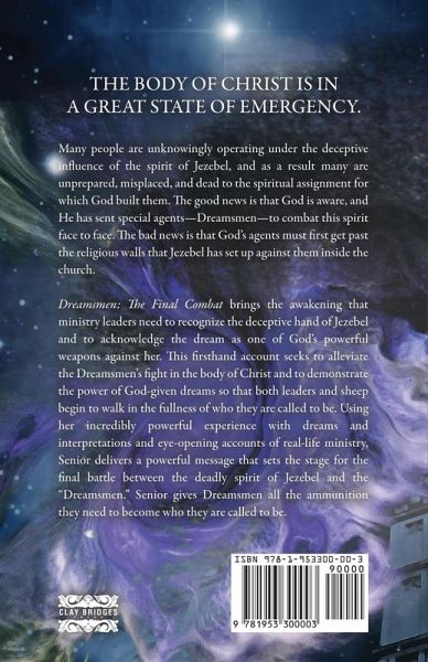 The body of Christ is in a great state of emergency. Many people are unknowingly operating under the deceptive influence of the spirit of Jezebel, and as a result many are unprepared, misplaced, and dead to the spiritual assignment for which God built them. The good news is that God is aware, and He has sent special agents-Dreamsmen- to combat this spirit face to face. The bad news is that God's agents must first get past the religious walls that Jezebel has set up against them inside the church. Dreamsmen: The Final Combat brings the awakening that ministry leaders need to recognize the deceptive hand of Jezebel and to acknowledge the dream as one of God's powerful weapons against her. This firsthand account seeks to alleviate the Dreamsmen's fight in the body of Christ and to demonstrate the power of God-given dreams so that both leaders and sheep begin to walk in the fullness of who they are called to be. Using her incredibly powerful experience with dreams and interpretations and eye-opening accounts of real-life ministry, Senior delivers a powerful message that sets the stage for the final battle between the deadly spirit of Jezebel and the "Dreamsmen." Senior gives Dreamsmen all the ammunition they need to become who they are called to be.