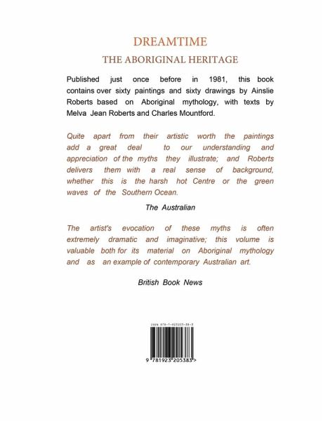 Published just once before in 1988, this book contains over sixty paintings and sixty drawings by Ainslie Roberts based on Aboriginal Mythology, with texts by Melva Jean Roberts and Charles Mountford. Introduced by Dale Roberts. Quite apart from their artistic worth the paintings add a great deal to our understanding and appreciation of the myths they illustrate; and Roberts delivers them with a real sense of background, whether this is the harsh hot Centre or the green waves of the Southern Ocean. - The Australian The artist's evocation of these myths is often extremely dramatic and imaginative; this volume is valuable both for its material on Aboriginal mythology and as an example of contemporary Australian art. - British Book News