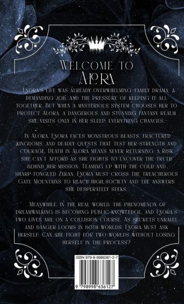 Enora's life was already overwhelming-family drama, a demanding job, and the pressure of keeping it all together. But when a mysterious system chooses her to protect Alora, a dangerous and stunning fantasy realm she visits only in her sleep, everything changes. In Alora, Enora faces monstrous beasts, fractured kingdoms, and deadly quests that test her strength and courage. Death in Alora means never returning-a risk she can't afford as she fights to uncover the truth behind her mission. Teaming up with the cold and sharp-tongued Zyran, Enora must cross the treacherous Gate Mountains to reach high society and the answers she desperately seeks. Meanwhile, in the real world, the phenomenon of dreamwalking is becoming public knowledge, and Enora's two lives are on a collision course. As secrets unravel and danger looms in both worlds, Enora must ask herself: Can she fight for two worlds without losing herself in the process?