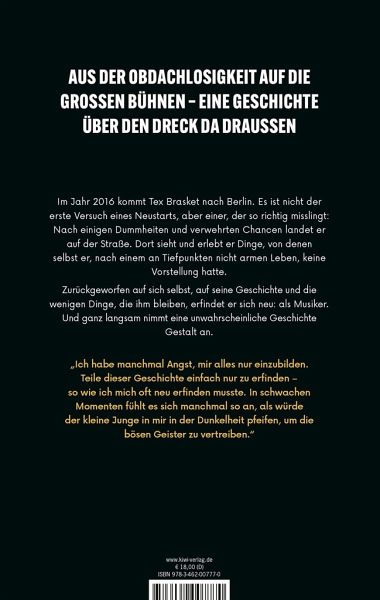 Im Jahr 2016 kommt Tex Brasket nach Berlin. Es ist nicht der erste Versuch eines Neustarts, aber einer, der so richtig misslingt: Nach der ein oder anderen Dummheit und einigen verwehrten Chancen landet er auf der Straße.