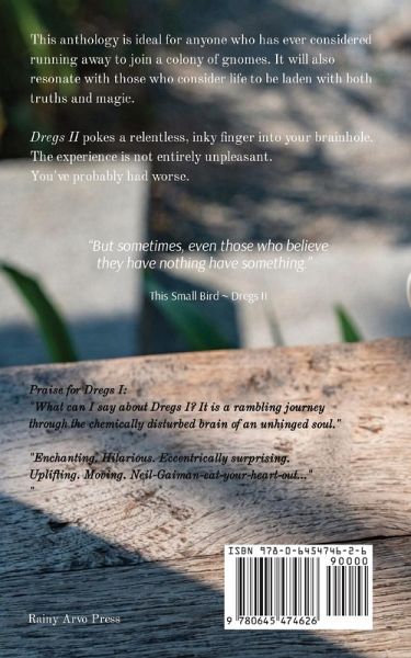 Following hot on the heels of the magnificent "Dregs - The First Batch", comes a new phenomenon. "Dregs II - The Aftertaste". Just when you thought it was safe to pick up an anthology again, here something very disturbing indeed. Yes, it's true! Dregs is back; and this time it is wearing shoes. As before, you will find poetry, short stories, angst, and thoughts about frost-bitten buttocks. Everything you need to read, but nothing you want to think about. Give it another go. You know you want to.