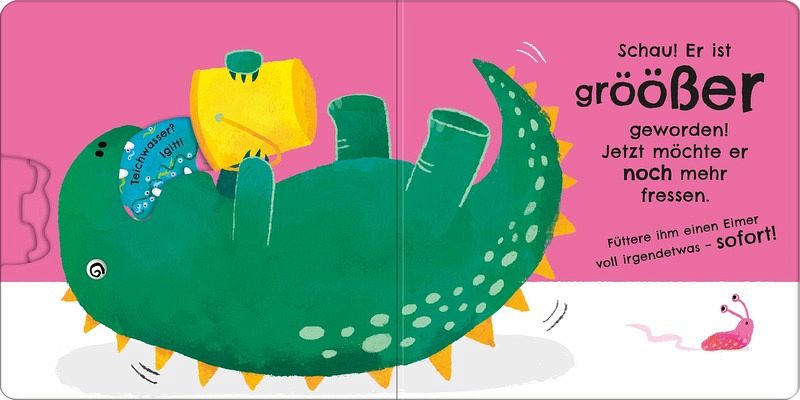 Fütter mich, dann wachse ichBitte kümmere dich gut um diesen Dinosaurier! Er ist SEHR hungrig. Füttere ihn, bis er so groß ist, dass er nicht mehr ins Buch passt. Aber was fressen Dinosaurier? Erdbeeren? Popcorn? Oder Gummistiefel? Dreh das Rad und finde es heraus ... Viel Glück!- Die Räder drehen, um das richtige Futter zu finden- Der hungrige kleine Dino wird immer größer - bis er am Ende fast nicht mehr ins Buch passt!- Fördert die Auge-Hand-Koordination und Feinmotorik- Mit robustem, leicht zu drehendem Rad auf jeder Doppelseite