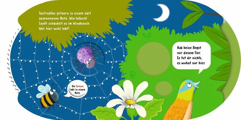 Wohnt das Pferd im Ententeich? Oder doch im Stall? Und was ist das Zuhause der kleinen fleißigen Biene? Wer kann erraten, wo all die Lieblingstiere wohnen? Durch Drehen an der Scheibe lassen sich die Tiere zuordnen und ein kleines Tier hilft beim Finden der richtigen Lösung!