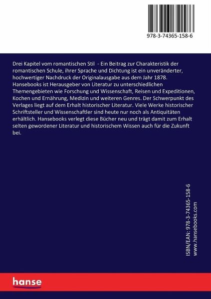 Drei Kapitel vom romantischen Stil - Ein Beitrag zur Charakteristik der romantischen Schule, ihrer Sprache und Dichtung ist ein unveränderter, hochwertiger Nachdruck der Originalausgabe aus dem Jahr 1878.