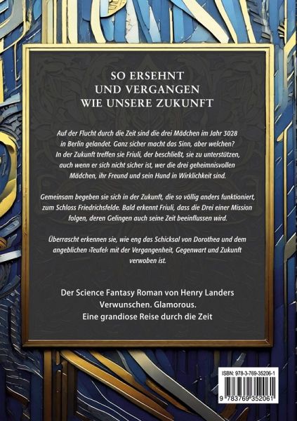 Auf der Flucht durch die Zeit sind die drei Mädchen im Jahr 3028 in Berlin gelandet. Ganz sicher macht das Sinn, aber welchen? In der Zukunft treffen sie Friuli, der beschließt, sie zu unterstützen, auch wenn er sich nicht sicher ist, wer die drei geheimnisvollen Mädchen, ihr Freund und sein Hund in Wirklichkeit sind. Gemeinsam begeben sie sich in der Zukunft, die so völlig anders funktioniert, zum Schloss Friedrichsfelde. Bald erkennt Friuli, dass die Drei einer Mission folgen, die auch seine Zeit beeinflussen wird. Überrascht erkennen sie, wie eng das Schicksal von Dorothea und dem mysteriösen "Teufel" mit der Vergangenheit, Gegenwart und Zukunft verwoben ist. Der Science Fantasy Roman von Henry Landers Verwunschen. Glamorous. Eine grandiose Reise durch die Zeit
