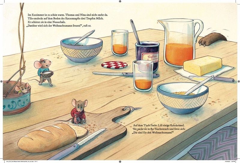 Die kleinen Mäuse Lili, Tilo und Baby Maus sehen von ihrem Dachboden aus einwunderschönes Licht: Es ist der Weihnachtsbaum, der unten im Esszimmer so schönglänzt. Die Kinder des Hauses freuen sich schon auf den Weihnachtsmann unddie Geschenke, die er ihnen bringen wird.Die Mäuse wünschen sich, dass der Weihnachtsmann auch zu ihnen kommt, undso besorgen sie sich einen winzig kleinen eigenen Baum aus einem Tannenzweig.Endlich kommt der Weihnachtsmann, doch er bleibt im Kamin stecken! Wie gut,dass die Mäuse nicht nur klein, sondern vor allem auch schlau sind. Sie wissen,wie sie dem Weihnachtsmann helfen können ...- Liebevoll erzählt, ideal zum Vorlesen in der Advents -und Weihnachtszeit- Auch wenn man klein ist, kann man viel erreichen- Über Wünsche, die wahr werden- Über den Mut sich Größeren und Stärkeren entgegenzustellen- Der Traum vom eigenen Weihnachtsbaum- Detailreiche Illustrationen laden die Kinder zum genauen Betrachten ein- Für Kinder ab 3 Jahren