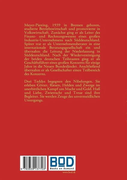 Drei Teddys begegnen den Nibelungen. Sie erkennen Götter, Riesen, Helden und Zwerge in ihrem unerbittlichen Streben nach Macht und Gold. Haß und Liebe, Zwietracht und Treue, Ruhm und Niedertracht sind ihre Weggefährten. Sie begleiten die Helden auf ihrem Weg in den unvermeidlichen Untergang.