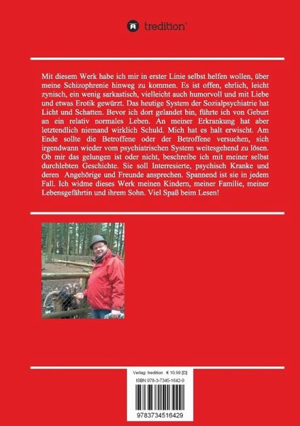 Dieses Buch beschreibt mein Leben von Geburt an bis zum Ausbruch meiner Schizophrenie und mein Leben damit. Es ist offen, ehrlich, ein wenig zynisch, leicht sarkastisch und mit Liebe und Erotik gewürzt. Ich widme es meinen Kindern, meiner Familie, meiner Lebensgefährtin und ihrem Sohn. Viel Spaß beim Lesen!