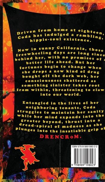 "DRENCROM is a tightly written thrill ride that hits the gas on page one and never once lets up. Highly entertaining, with visuals that run the gamut of gruesome, psychedelic, and achingly human. Hamelin Bird is a helluva wordsmith." - Laurel Hightower, author of CROSSROADS and BELOW Driven from home at eighteen, Coda has indulged a rambling, hippie-soul existence. Now in sunny California, those freewheeling days are long since behind her, with no promises of a better life ahead. But her fortunes begin to change when she drops a new kind of drug bought off the dark web, her consciousness shattered as something sinister takes root from within, threatening to claw into our world. Entangled in the lives of her neighboring tenants, Coda struggles to maintain her sanity while her mind expands into the greater beyond, thrust into a dread-spiral of madness as she plunges into the insatiable grip of DRENCROM.