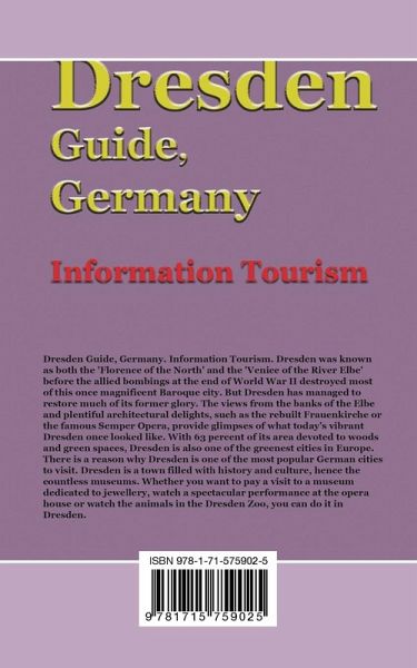 Dresden Guide, Germany. Information Tourism. Dresden was known as both the 'Florence of the North' and the 'Venice of the River Elbe' before the allied bombings at the end of World War II destroyed most of this once magnificent Baroque city. But Dresden has managed to restore much of its former glory. The views from the banks of the Elbe and plentiful architectural delights, such as the rebuilt Frauenkirche or the famous Semper Opera, provide glimpses of what today's vibrant Dresden once looked like. With 63 percent of its area devoted to woods and green spaces, Dresden is also one of the greenest cities in Europe. There is a reason why Dresden is one of the most popular German cities to visit. Dresden is a town filled with history and culture, hence the countless museums. Whether you want to pay a visit to a museum dedicated to jewellery, watch a spectacular performance at the opera house or watch the animals in the Dresden Zoo, you can do it in Dresden
