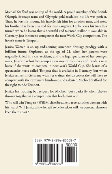 Dressage Dreaming is a steamy, enemies-to-lovers contemporary romance taking place mostly in the UK. Michael Stafford was on top of the world. A proud member of the British Olympic dressage team and Olympic gold medalist, his life was perfect. Then, he lost his mount, his fiancée left him for another man, and now, his brother has been arrested for manslaughter. He believes his luck has turned when he learns that a beautiful and talented stallion is available in Germany, just in time to compete in the next World Cup competition. The horse's name is Tempest. Jessica Warren is an up-and-coming…mehr