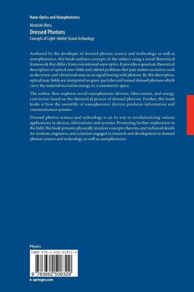 Authored by the developer of dressed photon science and technology as well as nanophotonics, this book outlines concepts of the subject using a novel theoretical framework that differs from conventional wave optics. It provides a quantum theoretical description of optical near fields and related problems that puts matter excitation such as electronic and vibrational ones on an equal footing with photons. By this description, optical near fields are interpreted as quasi-particles and named dressed photons which carry the material excitation energy in a nanometric space.