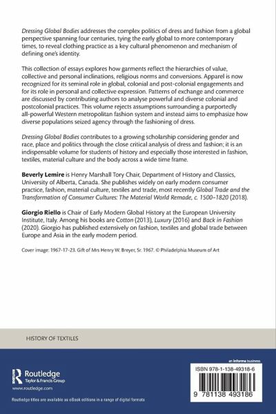Dressing Global Bodies contributes to a growing scholarship considering gender and race, place and politics through the close critical analysis of dress and fashion; it is an indispensable volume for students of history and especially those interested in fashion, textiles, material culture and the body across a wide time frame.